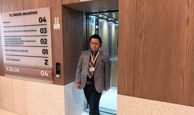 Bursa'nın İnegöl ilçesinde down sendromlu 29 yaşındaki Can Ahmet Haymana, 3 yıl önce belediyenin sosyal sorumluluk projesi kapsamında Belediye Başkanı Alper Taban'ın makamının yanında oluşturulan "Başkan +1" ofisinde görevler üstleniyor.