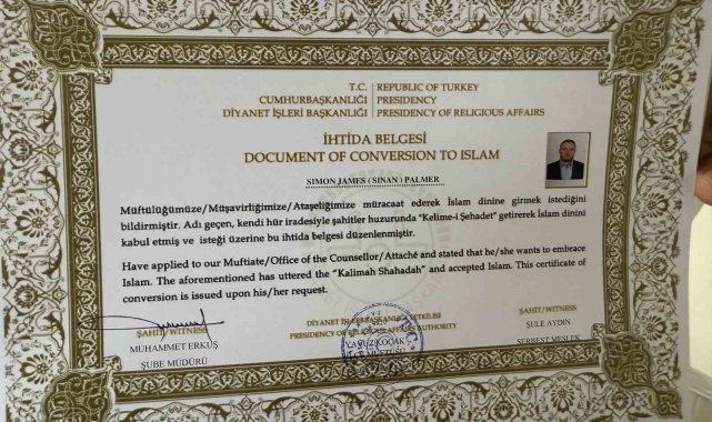 Türkiye'de iş seyahati sırasında tanıştığı Zeynep Aydın'a gönlünü kaptıran İngiliz vatandaşı Simon James Palmer, aldığı kararla hem inanç dünyasını hem de kimliğini değiştirdi. Evlilik kararı alan çift, hazırlıklarını sürdürürken Palmer, İslamiyet'i araştırmaya başladı. Edindiği bilgiler ve Zeynep'ten aldığı destekle müslüman olmaya karar verdi. Palmer için Sapanca İlçe Müftülüğü tarafından ihtida merasimi düzenlendi. Kur'an-ı Kerim tilavetiyle başlayan törende, Müftü Yavuz Koçak tarafından İslam'ın temel esasları anlatıldı. Ardından Palmer, şahitler huzurunda Kelime-i Şehadet getirerek müslüman oldu. Yeni ismi ise 'Sinan' oldu.
