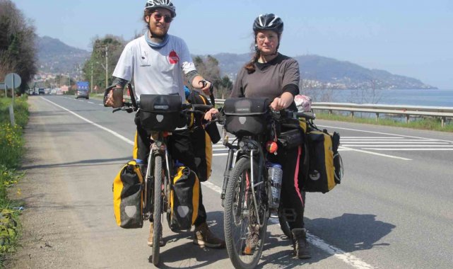 İngiltere'den bisikletleriyle yola çıkan Alexia Lamoureux ve Owain Paul, yaklaşık 80 bin kilometrelik dünya turu hedefiyle Ordu'ya ulaştı. 6 kıtayı pedal çevirerek geçmeyi planlayan çift, yolculuklarını tamamen macera tutkusu için yaptıklarını belirtti.