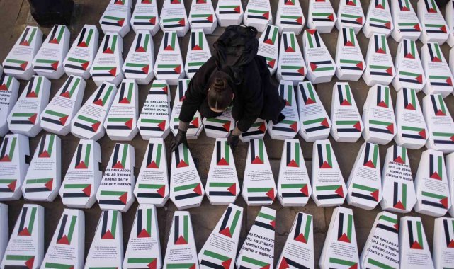 İngiltere'nin başkenti Londra'da Başbakanlık Konutu'nun yakınına İsrail saldırılarında Gazze Şeridi'nde hayatını kaybeden çocukların anısına 450'den fazla sembolik çocuk tabutu bırakıldı. İsrail'in Gazze Şeridi'ne yönelik saldırıları, İngiltere'nin başkenti Londra'da protesto edildi. Başkentte toplanan Filistin yanlısı grup, İsrail saldırılarında öldürülen Filistinli çocukların anısına Başbakanlık Konutu'nun bulunduğu sokağın dışına 450'den fazla sembolik çocuk tabutu bırakarak, İsrail'in Gazze Şeridi'ne yönelik saldırılarını protesto etti. Çocuklarında katıldığı gösteride, sembolik tabutların üzerine İsrail saldırılarında hayatını kaybeden Filistinli çocukların isimleri ve yaşları yazıldı. İsrail'in 7 Ekim'den bu yana Gazze Şeridi'ne düzenlediği saldırılarda en az 6 bin 150'si çocuk olmak üzere 15 binden fazla kişi hayatını kaybetti.