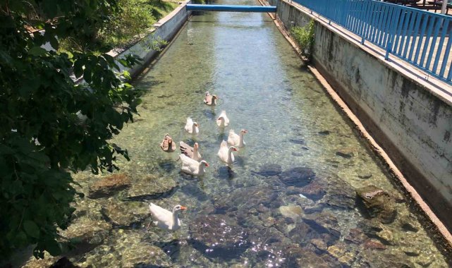 Eskişehir'in İnönü ilçesindeki Türk Hava Kurumu (THK) İnönü Havacılık Eğitim Merkezi'nden geçen kanal, berrak suları ve keyifle gezen renkli ördekleri ile dikkat çekiyor.