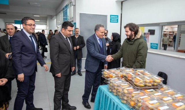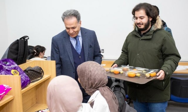 Kütüphane içindeki salonlara uğrayarak sınavlara çalışan öğrencilere ikramlarda bulunan Rektör Akpolat, öğrencilerle bir süre sohbet ederek başarı temennisinde bulundu.