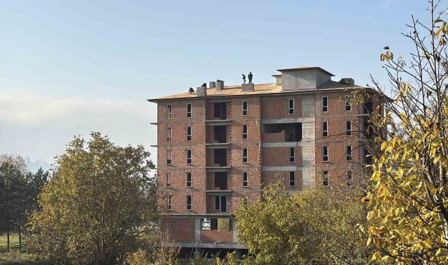 Karabük'te 6 katlı bir inşaatın çatısında işçilerin herhangi bir güvenlik önlemi almadan çalıştığı anlar cep telefonu kamerasına yansıdı.