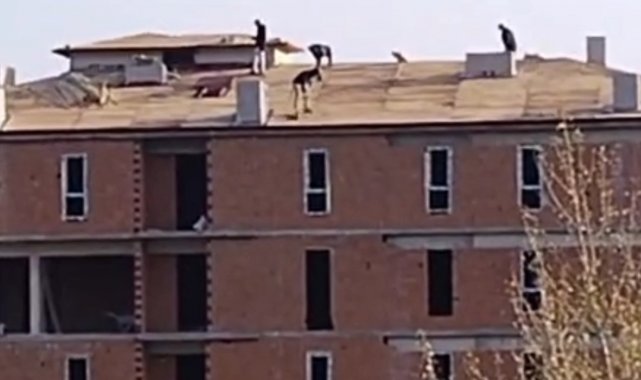 İnşaat çatısında tehlikeli çalışma kameraya yansıdı