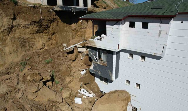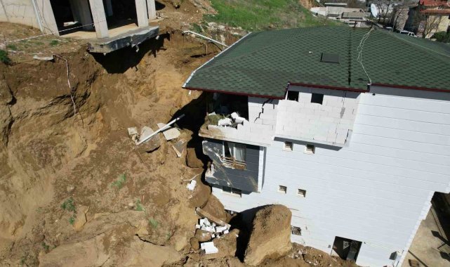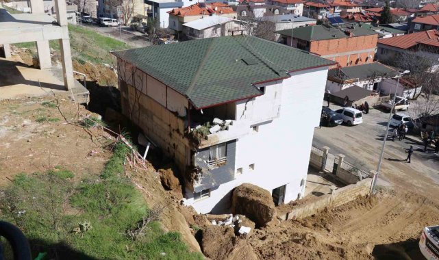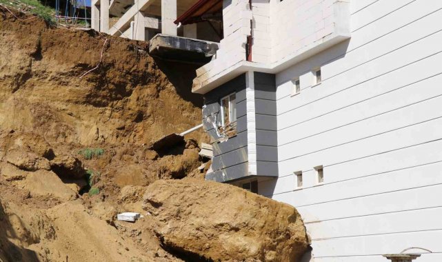 İnşaat kazısında kopan dev kaya parçası yanındaki binada hasara yol açtı