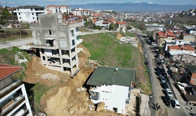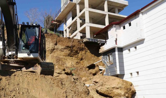 Denizli'de inşaat kazısı sırasında kopan kaya parçası ve meydana gelen toprak kayması, hem binaya hem de binanın istinat duvarına zarar verdi. Kayan toprak sebebiyle bir başka binanın da temeli açığa çıktı.