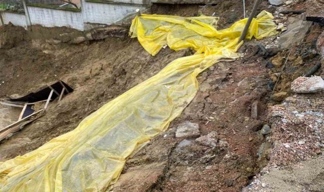 İnşaat kazısında toprak kaydı, yolun bir bölümü çöktü