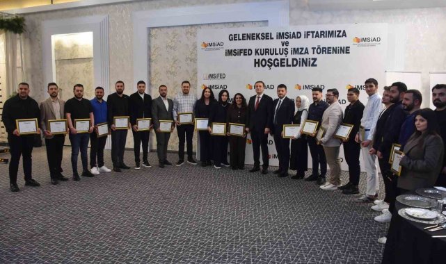 Programın son bölümünde de İMSİAD Yönetim Kurulu Başkanı Şeref Demir ve protokol üyeleri yeni kurulan Genç İMSİAD'ın kurucu üyelerine berat takdim etti.