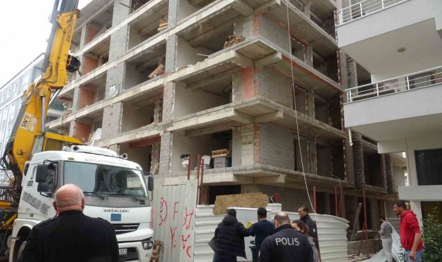 Polis ekipleri inşaat alanında güvenlik önlemleri alırken, olay yeri inceleme ekipleri de düşmenin yaşandığı noktada çalışma yaptı.