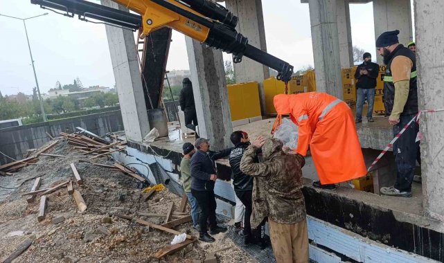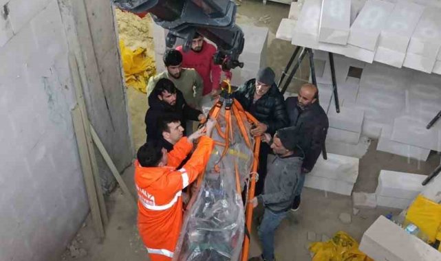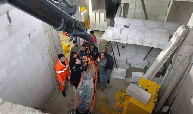 İnşaatta düşen işçi vinç yardımıyla kurtarıldı