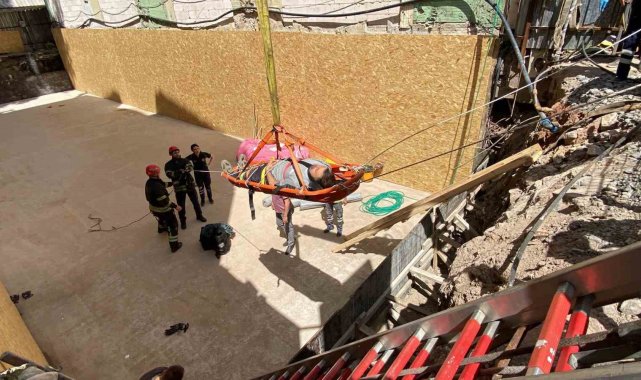 İnşaatta kaza: Yaralı işçi vinçle kurtarıldı