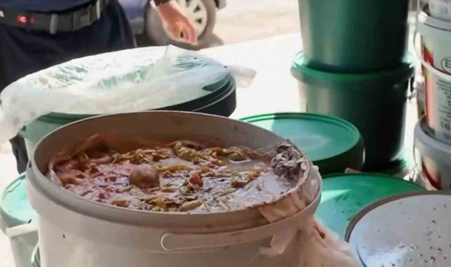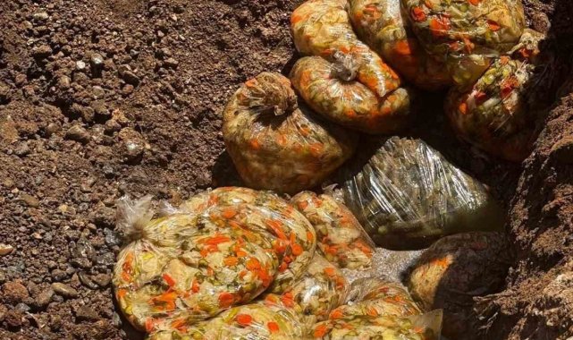 Hatay'da insan sağlığını tehdit eden ve tarihi geçen 800 kilogram turşu, toprak altına gömülerek imha edildi.