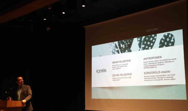 Prof. Dr. Güncel Önkal, "Antroposen Eleştiri" isimli sunumuna, filozofların artık fildişi kulelerinde olmadığını insanlığın ortaya çıkardığı sorunlarla ve doğayla ilgilenmeye başladıklarını ifade ederek başladı. "Antroposen"in kelime anlamı olarak insanlık çağı olduğunu açıklayarak sözlerini sürdüren Güncel Önkal, "Bu disiplinin klâsik insan felsefesine karşı geliştirdiği eleştiriler var. Burada, insana değil insanın içine sürüklenmiş olduğu duruma yönelik eleştiri var fakat insan merkezli bir yaklaşım değil." dedi. İnsan felsefesi, çevre felsefesi, antroposen ve sürdürülemezlik konulu 4 başlık etrafında yaptığı sunuma Önkal, ünlü Rus yazar Tolstoy'un "İnsan Neyle Yaşar?" kitabına da vurgu yaptı. Önkal bu alanda çalışmalar yapan Alan Badiou, Slajov Zizek, Günther Anders, Keith R. Peterson gibi filozof ve yazarlardan da örnekler vererek sunumunu zenginleştirdi.