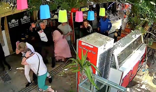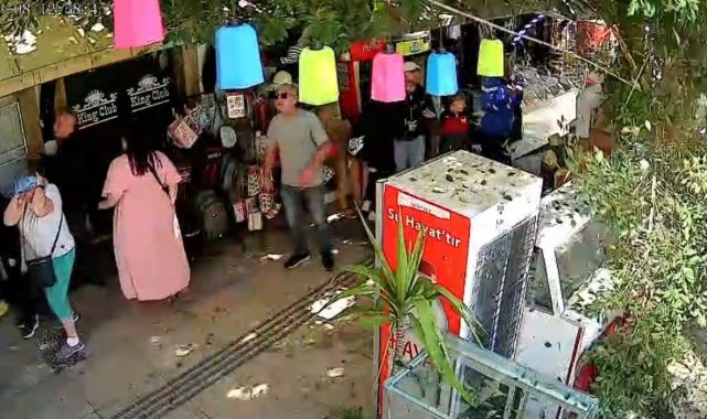 Öte yandan demirin düştüğü sırada ağaca verdiği zarar ve çıkardığı sesle turistlerin korku dolu anlar yaşadığı görüntüler, işyerinin güvenlik kamerasına yansıdı. Çocukların da yer aldığı yaklaşık 15 kişilik turist bir gurup, düşen demir sonrası bulundukları yerden uzaklaşması da görüntülere yansıdı.