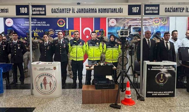 Gaziantep İl Jandarma Komutanlığı standına akın eden vatandaşlara jandarmanın Kadın Acil Destek Uygulaması (KADES), siber suçlar, olay yeri inceleme, patlayıcı madde imha, sahil güvenlik, otoyol jandarması, trafik jandarması gibi pek çok alandaki uygulama ve faaliyetleri hakkında bilgilendirme yapılarak kullanılan ekip ve ekipmanlar tanıtıldı.