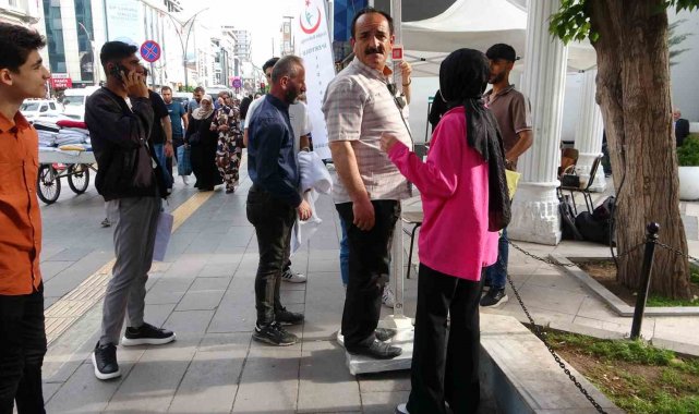 Van'ın İpekyolu İlçe Sağlık Müdürlüğü, iki ayrı noktada kurduğu stantlarla vatandaşlara ücretsiz boy, kilo ve sigara bağımlılığı ölçümünü gerçekleştiriyor.