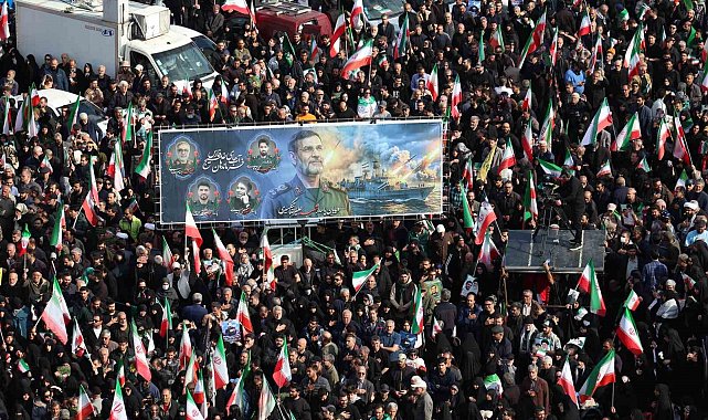 İran, ABD ve İsrail'in düzenlediği saldırılarda hayatını kaybeden komutanlarını uğurluyor. Başkent Tahran'da düzenlenen Devrim Muhafızları Ordusu Deniz Kuvvetleri Komutanı Amiral Ali Rıza Tengsiri'nin cenaze törenine binlerce kişi katıldı. İnkılap Meydanı'nda düzenlenen törende Tengsiri ile birlikte ABD ve İsrail saldırılarında hayatını kaybeden Genelkurmay Başkanı Danışmanı Cemşid İshaki ve çok sayıda kişinin naaşı, kalabalığın arasından geçirilerek meydana getirildi. Gözyaşları ve öfkenin iç içe geçtiği törende, ABD ve İsrail aleyhine sloganlar atıldı. Törene katılan İranlılar, Tengsiri'nin yanı sıra Dini Lider Mücteba Hamaney ile eski dini lider Ali Hamaney'in fotoğraflarını taşıdı.