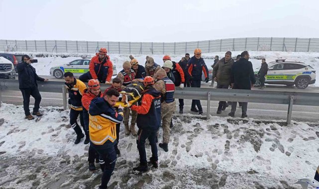 Kaza sonrası yol trafiğe kapanırken bölgede etkili olan yoğun sis trafiği durma noktasına getirdi.