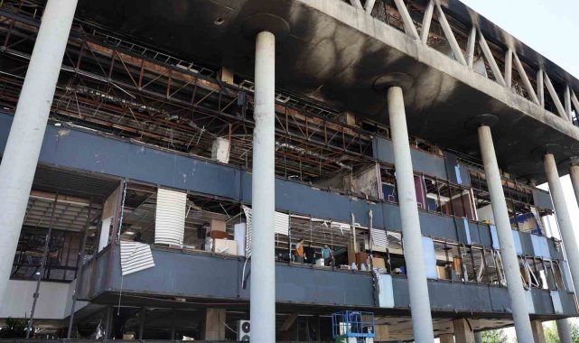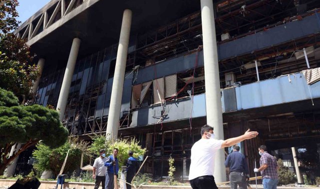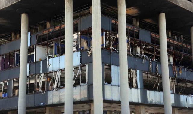 İsrail'in 16 Haziran'da İran'da hedef aldığı İran Radyo ve Televizyon Kurumunun (IRIB) yerleşkesinde meydana gelen ağır hasar görüntülendi.