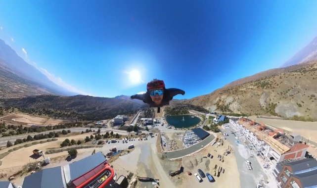 İrlandalı sporcu Michael Moranmm ve tandem pilotu Ayşenur Katırcı, Erzincan Ergan Dağı'nda 2000 metre yükseklikten wingsuit atlayış gerçekleştirerek nefes kesen anlar yaşattı.