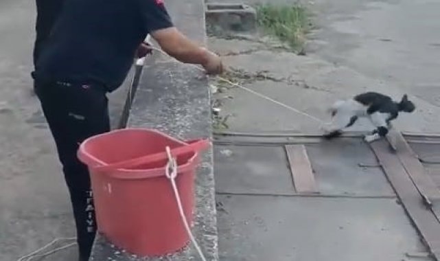 Vakıf iş hanının bahçesindeki havalandırma boşluğunda mahsur kalan kediyi fark eden bina sakinleri, kurtarmak için harekete geçti. Havalandırma boşluğunun demir kapağı açılamayınca itfaiye ekiplerinden yardım istendi. Hana gelen ekipler kapağı keserek açarken, bina sakinleri kedinin rahatlıkla tırmanarak çıkabilmesi için 5 metre uzunluğundaki tahtayı file ile kapladı ancak kedi tahtaya tırmanmadı. İtfaiye ekiplerinin uzattığı ip yardımıyla kedi ayağından yakalanarak bulunduğu yerden çıkarıldı.
