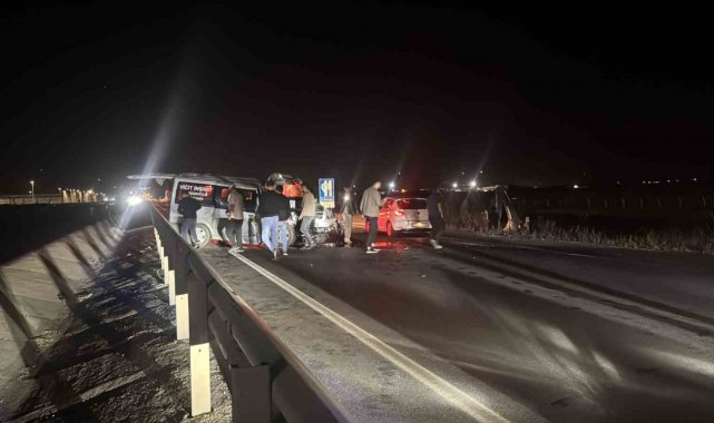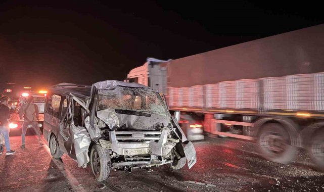 İş makinasına çarpan minibüs şoförü yaralandı