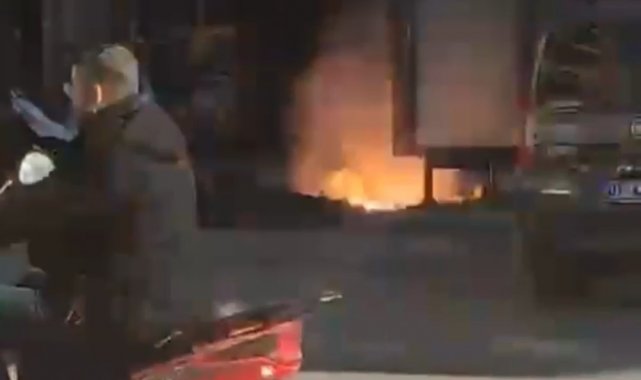 İş makinesi elektrik tellerine zarar verince yangın çıktı