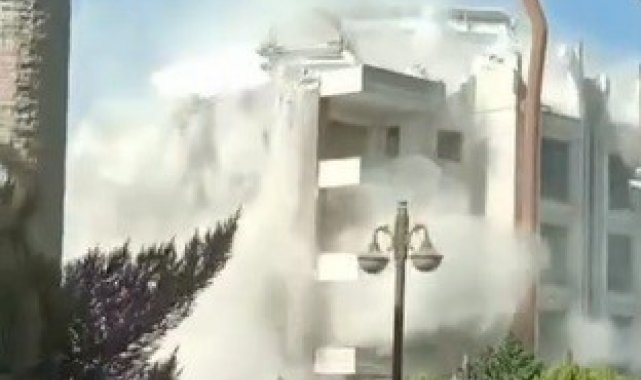 İş makinesinin darbesiyle 9 katlı bina yerle bir oldu
