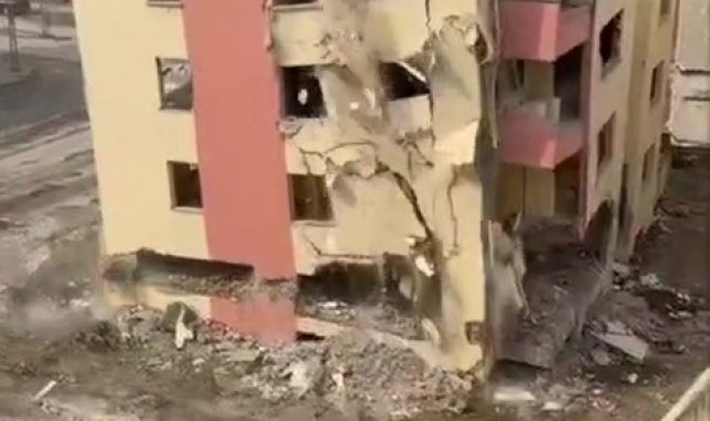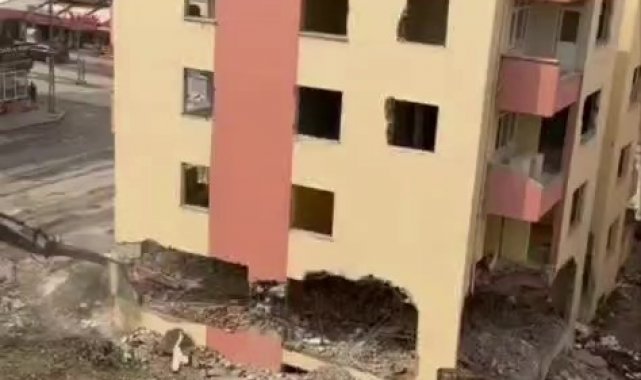 Kahramanmaraş merkezli depremlerde ağır hasar alan Hatay'da, mahkeme süreci tamamlanan binaların yıkım ve enkaz kaldırma çalışmaları hız kesmeden devam ediyor. Bu kapsamda Dörtyol ilçesi Numuneevler Mahallesi'nde bulunan 4 katlı bir bina, kentsel dönüşüm çalışmaları çerçevesinde iş makinesiyle kontrollü şekilde yıkıldı. Yıkım sırasında herhangi bir olumsuzluk yaşanmazken, o anlar cep telefonu kameraları tarafından anbean kaydedildi.
