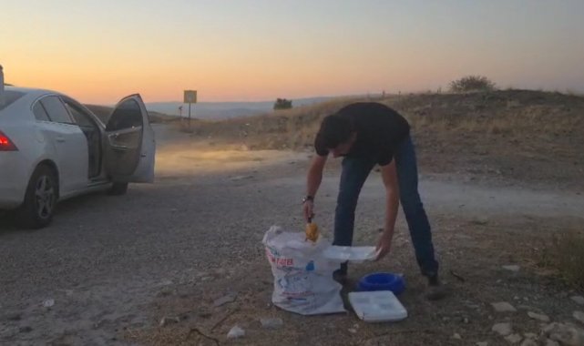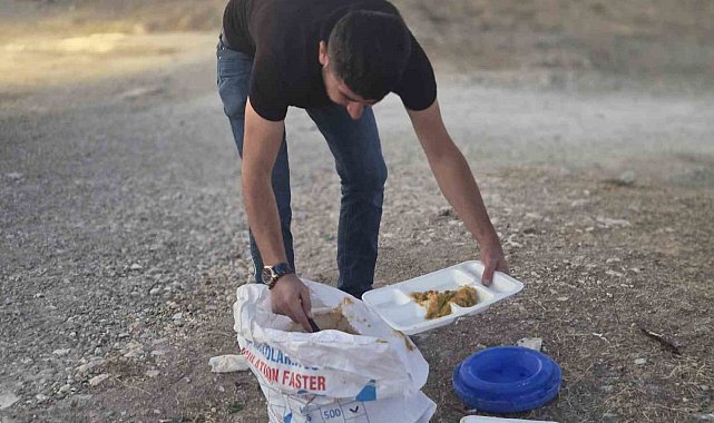 İş yerinden artan yemekleri sokak hayvanları için doğaya bırakıyor