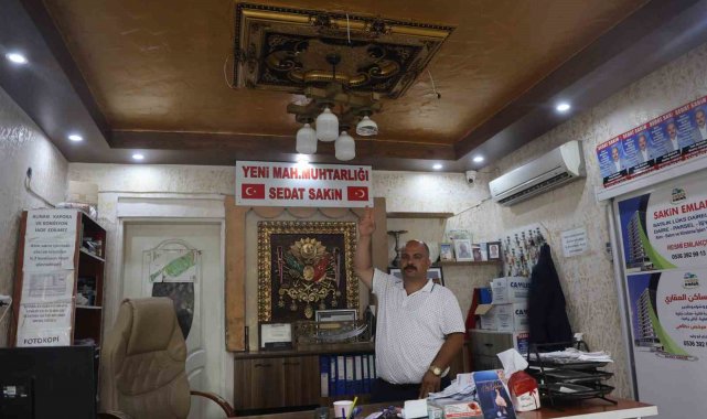 Arkadaşları yolcu ettikten sonra oturmamla aniden asma tavanın çöktüğünü ifade eden Yeni Mahalle Muhtarı Sedat Sakin, "Muhtar arkadaşlarla masanın öbür tarafında oturuyordum. O esnada arkadaşları yolcu etmek için kalktım ve yerimi değiştirdim. Yaklaşık bir dakika sonra tavandan ses geldi ve bir anda üstümüze çöktü. Tavanda bazı yerlerde sıkıntı olmuş. Artık nasıl oldu anlamadım. Sadakamız varmış, tavan yere çakıldı. Yanımda da dayım oturuyordu o esnada. O esnada rahattık bayağı sıkıntı yok, sadece şaşırdık. Ben telefonla konuşuyordum ve hiç istifimi bozmayınca arkadaşı da gülme tuttu. Verilmiş sadakamız varmış ve büyük bir kaza atlattık" ifadelerini kullandı.
