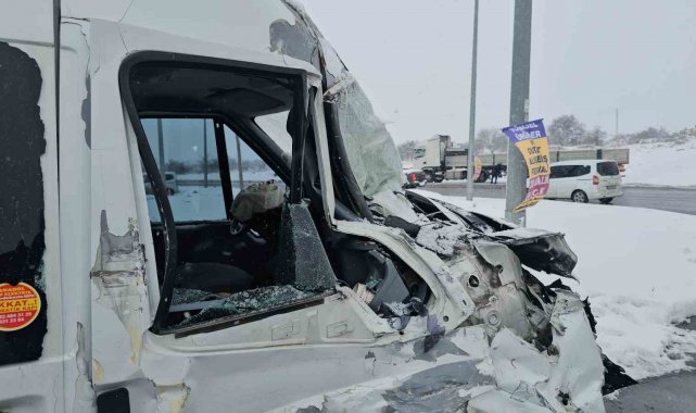 Kayseri'nin Melikgazi ilçesinde işçi servisinin iddiaya göre, ana yola kontrolsüz çıkan tıra çarptığı kazada 11 kişi yaralandı.