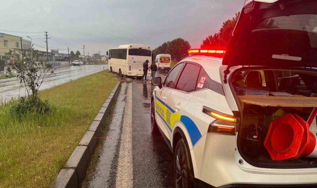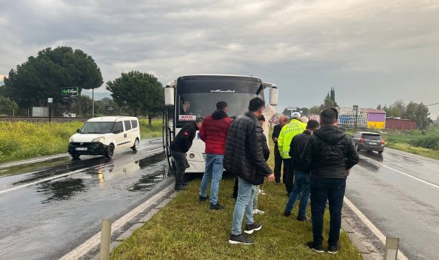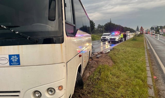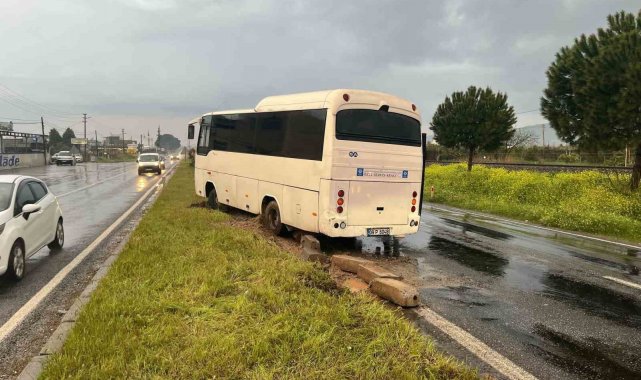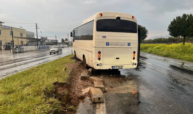 Aydın'ın İncirliova ilçesinde işçileri taşıyan servis aşırı yağış nedeniyle kayganlaşan yolda refüje çıkarken, kazada şans eseri kimse yaralanmadı.