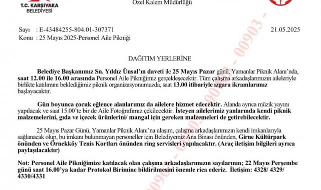 Karşıyaka Belediyesi, maaşlarını ödeyemediği işçilere aile pikniği düzenledi. Belediye Başkanı Behice Yıldız Ünsal'ın maaşlarını gecikmeli ve parça parça alan işçileri ve ailelerini pikniğe götürmesi, sendika tarafından tepkiyle karşılandı. Piknik organizasyonuna ilk tepki ise Disk Genel-İş İzmir 10 No'lu Şube Yönetim Kurulu ve İşyeri Sendika temsilcilerinden geldi. Sendika, Kent A.Ş'de çalışan işçilerin ise Ocak ayı maaşının yüzde 60'ı, Şubat, Mart ve Nisan ayı maaşlarının tamamı ile TİS farklarının da Mayıs ayının sonuna gelinmesine rağmen henüz ödenmediğini de açıkladı. İşçi maaşları yatırılmamışken belediyenin bugün birlik ve dayanışma piknik organizasyonu düzenlemesine sendika, tepki gösterdi.
