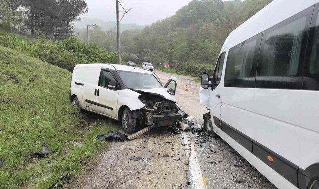 İşçileri taşıyan servis minibüsü ile hafif ticari araç çarpıştı: 13 yaralı