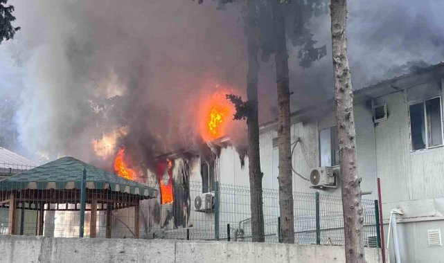 İşçilerin kaldığı konteyner yatakhane alevlere teslim oldu