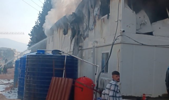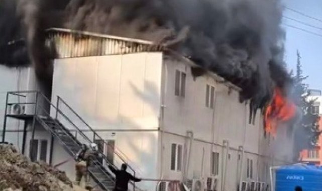 Hatay'ın Antakya ilçesinde işçilerin kaldığı konteyner yatakhane yanarak kullanılamaz hale geldi.