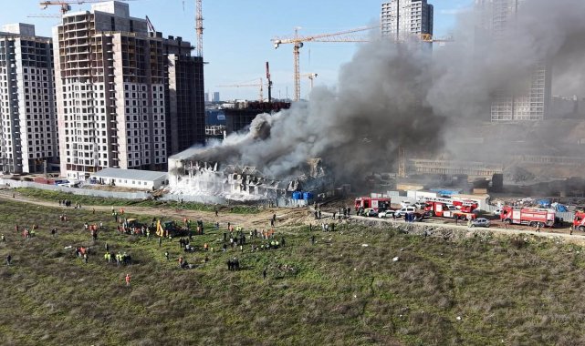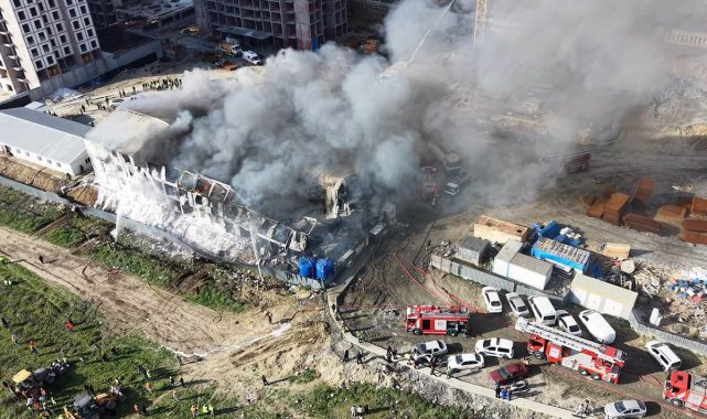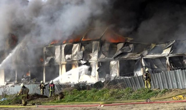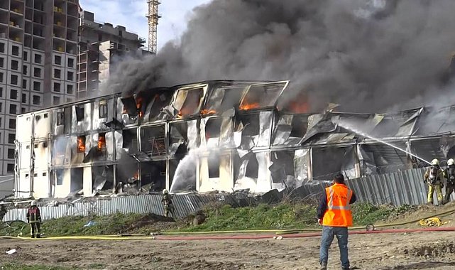 Esenyurt'ta 3 katlı işçi konteynerinde çıkan yangın kontrol altına alındı. 400 kişilik konteynerin alev alev yandığı anlar havadan görüntülendi.
