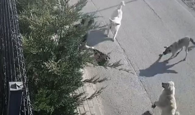 Bursa'da sabah işe gitmek üzere yola çıkan genç kadın, sokak köpeklerinin saldırısına uğradı. Korku dolu anlar çevredeki güvenlik kamerasına yansırken, saldırıya uğrayan güvenlik görevlisi Esra Kuloğlu bacağından hafif şekilde yaralandı.