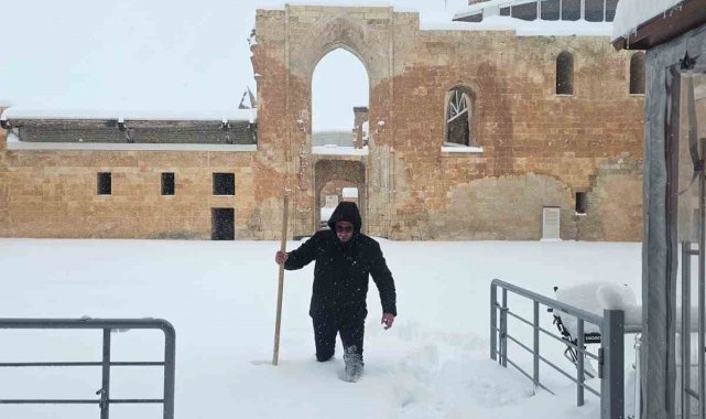 İshak Paşa Sarayı'nda kar temizleme çalışmaları sürüyor