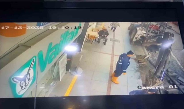 Öte yandan bölgedeki bir işletmede patlamadan kaynaklı fışkıran sudan nasibini aldı. İşletmenin camı balçık ile bulanırken içerisine su girdi. O anlar ise anbean güvenlik kamerasına yansıdı.