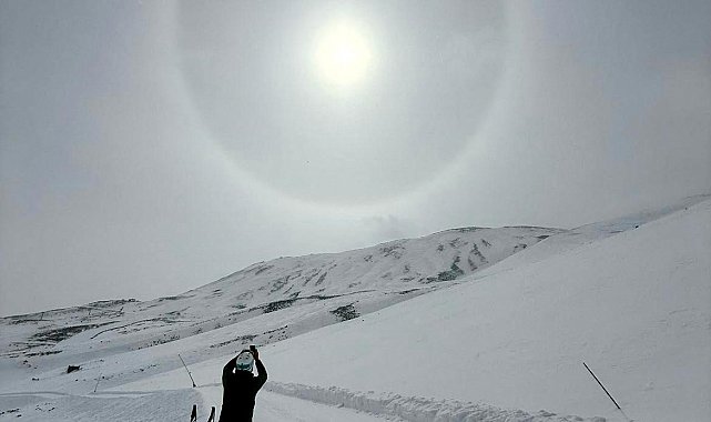 Güneşin etrafında beliren etkileyici ışık halkası olan 'halo' Erciyes'te görüntülendi.