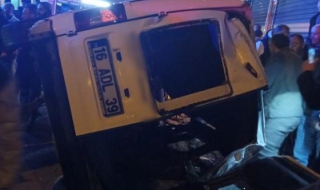 Kaza, merkez Yıldırım ilçesi Millet Mahallesi'nde meydana geldi. İbrahim A. idaresindeki 16 ADL 39 plakalı hafit ticari otomobil kırmızı ışıkta geçti. Seyir halindeki başka bir otomobile çarpmamak için manevra yapan İbrahim A., önce direğe daha sonra da kaldırımda bulunan ağaca çarparak takla attı. İhbar üzerine olay yerine polis ve sağlık ekibi sevk edildi. Kazada, İbrahim A. ağır yaralanırken, yolcu Erhan K. ise hafif yaralandı. Yaralılar, olay yerinde yapılan ilk müdahalenin ardından çevre hastanelere sevk edildi. Ayrıca, aracın taklalar attığı kaza anı saniye saniye güvenlik kamerasına yansıdı.