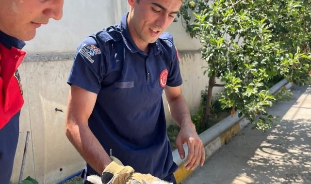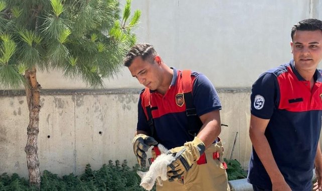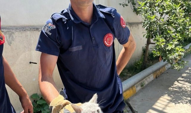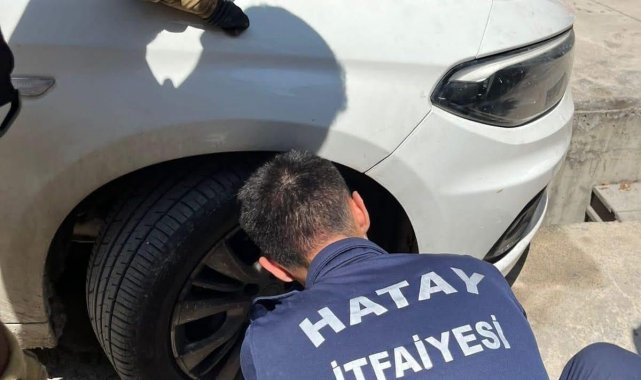 Hatay'da aracın kaputuna giren yavru kediyi itfaiye ekipleri kurtardı.