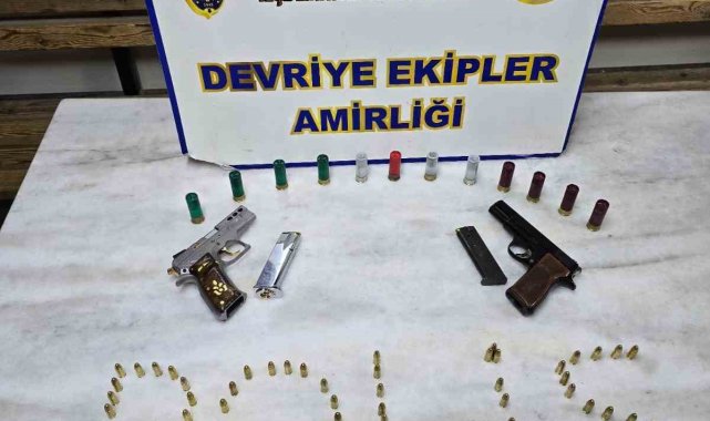 Yapılan aramalarda; 2 adet ruhsatsız tabanca, 80 adet 9 mm fişek,12 adet tüfek fişeği ele geçirildi.
