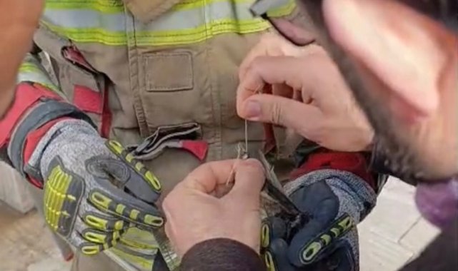 Hatay'ın İskenderun ilçesinde binanın dış cephesinde ipe dolanarak mahsur kalan kuş, itfaiye ekipleri tarafından kurtarıldı.