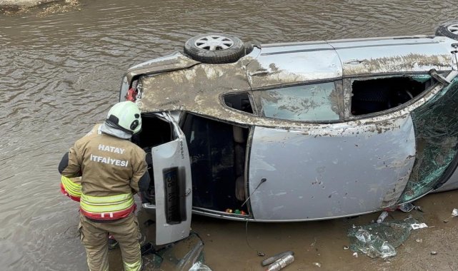 Hatay'a sürücüsünün direksiyon hakimiyetini kaybetmesiyle kanala düşerek yan yatan otomobildeki 2 kişi yaralandı.