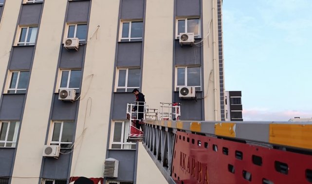 Hatay'da klima motorunun kablosuna dolaşarak mahsur kalan kuşu itfaiye kurtardı.