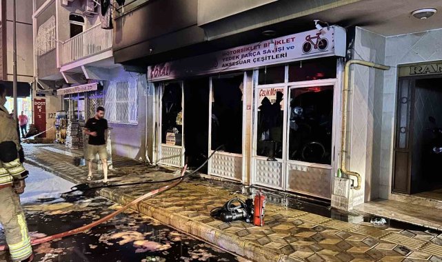 Hatay'ın İskenderun ilçesinde motosiklet tamircisinde çıkan yangın büyümeden söndürüldü.