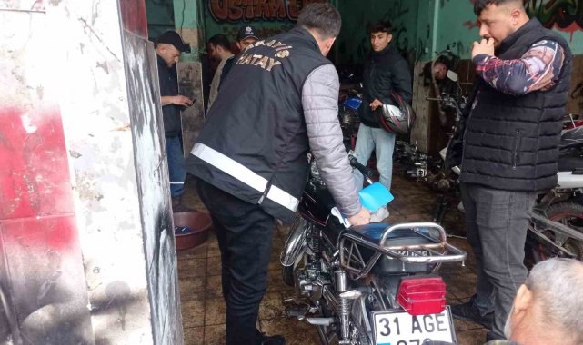 Hatay'da Emniyet Müdürlüğü görevlilerince motosiklet tamircilerine yönelik denetim yapıldı, işyerlerinde bulunan 129 motosiklet kontrol edildi.